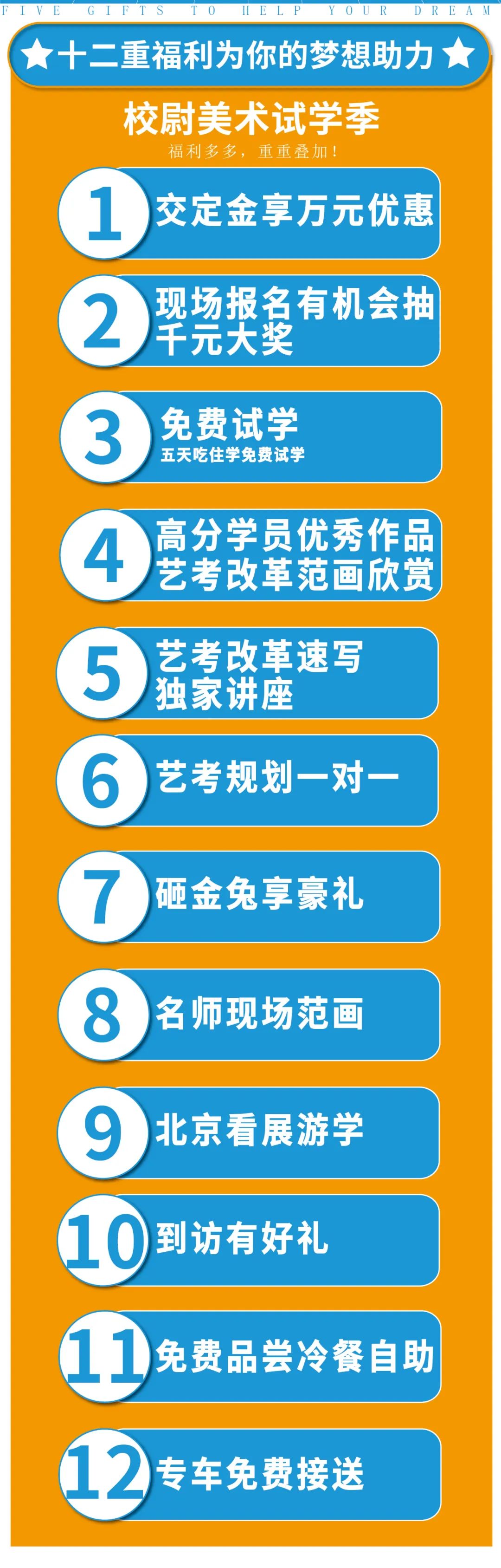 这个五一小长假,来校尉美术参加试学活动,不仅吃住学费用全免,只要来校参观试学,即可获得校尉美术精美伴手礼一份。